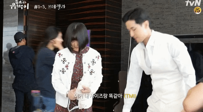 전소민은 굴하지 않고 “이거 진짜 내 사이즈야”라며 다시 한번 속옷을 펼쳐서 보여줬습니다. 김지석은 입을 가리며 쑥스러워했죠.