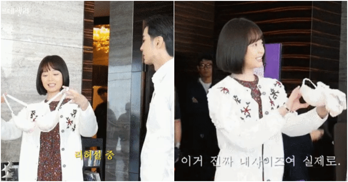 촬영에 쓰일 소품을 체크하고 있었습니다. 그런데 이때, 전소민이 브래지어를 들고 옷 위에 대봤습니다. 촬영 리허설을 한 건데요.