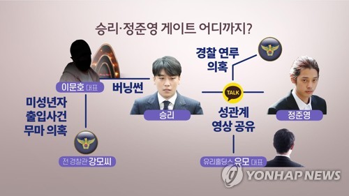 (서울=연합뉴스) 김기훈 기자 = 빅뱅 멤버 승리(본명 이승현·29)와 가수 정준영(30) 등 유명 연예인의 경찰 유착 의혹을 수사하는 경찰이 유착 의혹을 받는 총경급 인사를 참고인 신분으로 불러 조사하고 있다.