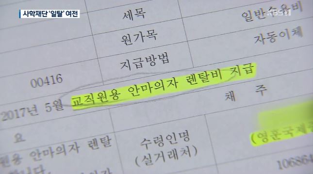 서류에는 교직원을 위해 안마의자를 샀다고 적혔지만, 교장 외에는 아무도 사용하지 않았는데요.