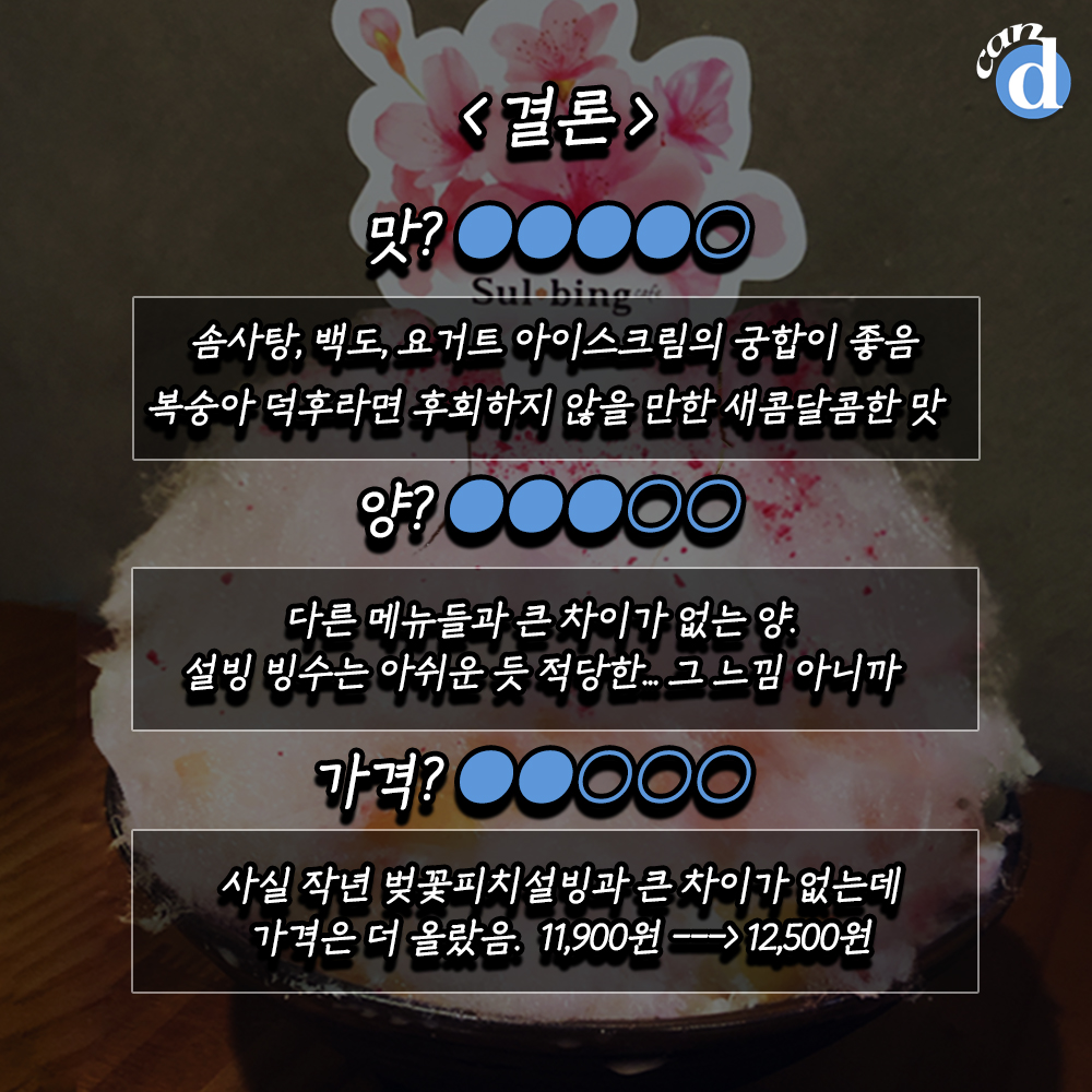 벚꽃피치설빙은 12,500원. 작년보다 가격이 좀 올랐네요 (ㅠㅠ)