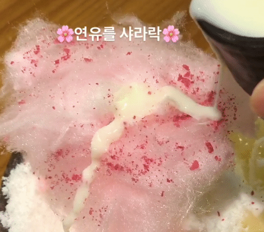 달콤한 솜사탕을 먼저 즐기고 취향껏 연유를 뿌려주면 됩니다.