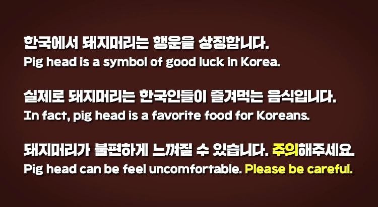 그 이유는 다름아닌 영상 초반에 등장하는 멘트 때문이었습니다. "한국인들은 돼지머리를 즐겨먹는 음식이다"라고 쓴 것 때문인데요.