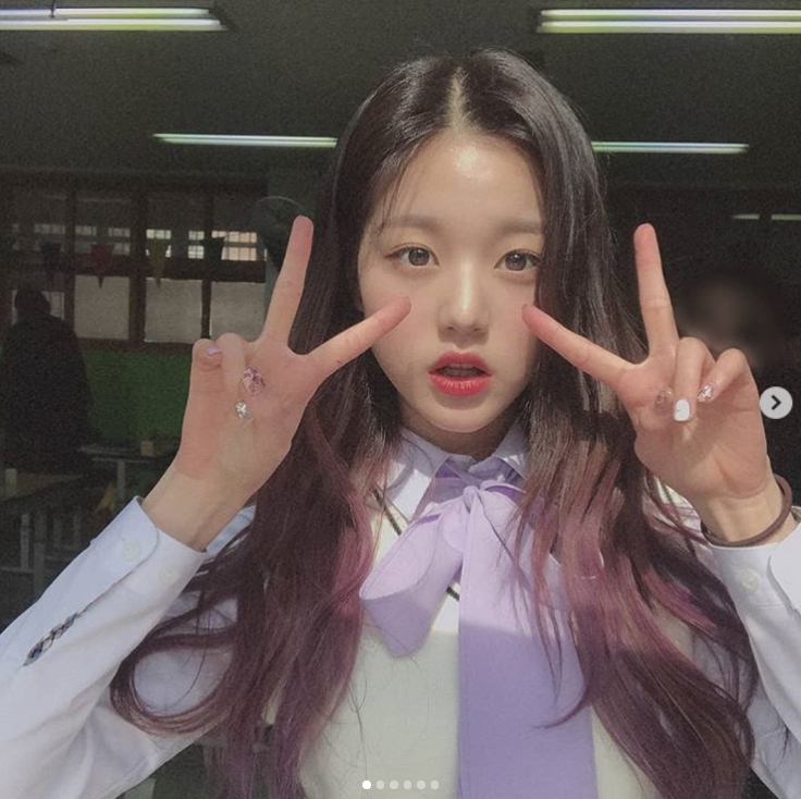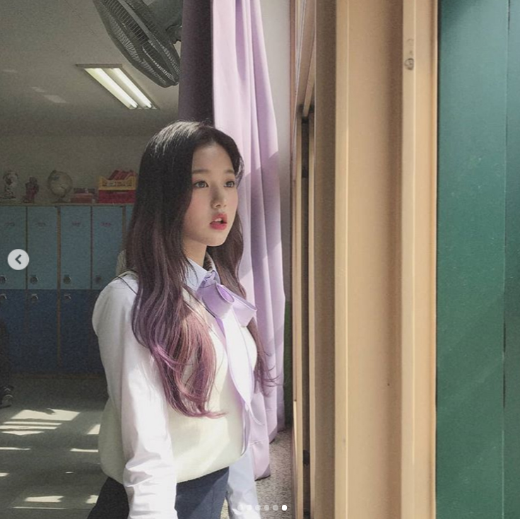 어제(1일) 신곡을 발표한 걸그룹이죠. '아이즈원' 장원영이 교복을 입었습니다.