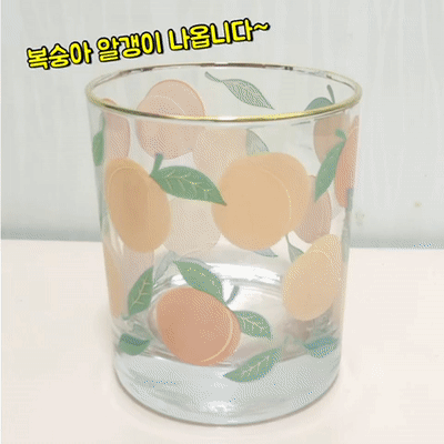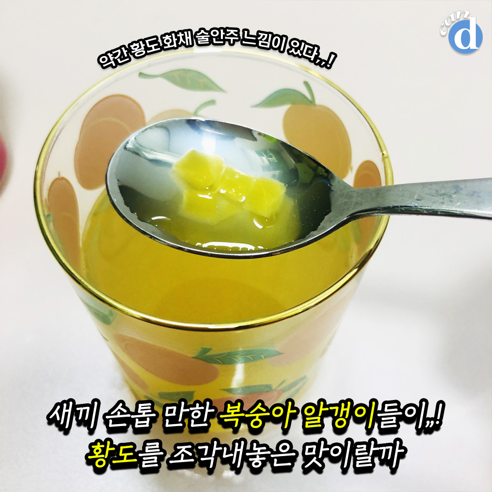 복숭아 알갱이를 눈으로 봐야 할 듯해 컵에 부었습니다.