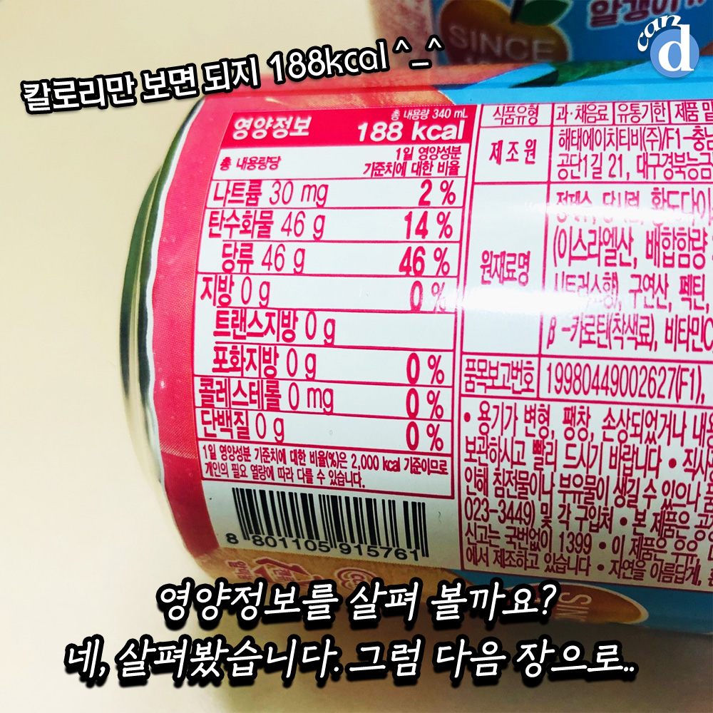 340ml의 넉넉한 양으로 한 캔을 다 마시면 배가 부를 정도였고요.
