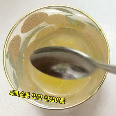 조금 흔들어서 다시 컵에 부으니 이번엔 알갱이들이 제대로 나왔습니다.