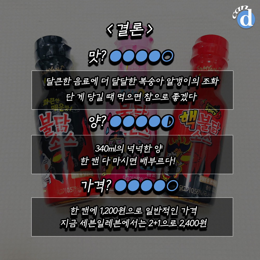 4월 기준, 세븐일레븐에서 2+1 행사로 3캔을 2,400원에 구매할 수 있었습니다.