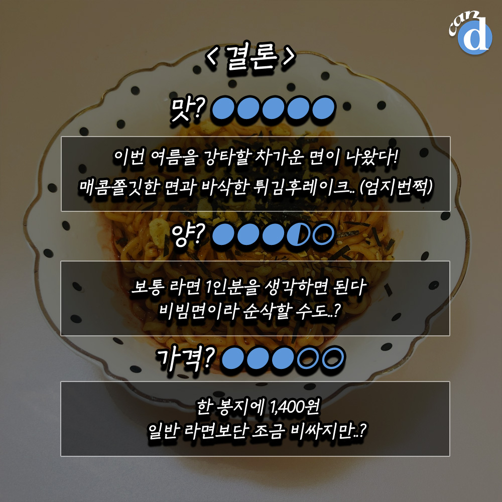 단, 비빔면이기 때문에 먹다보면 바닥이 보인다는 점... 양이 많은 분은 2개를 끓여드시기 바랍니다.