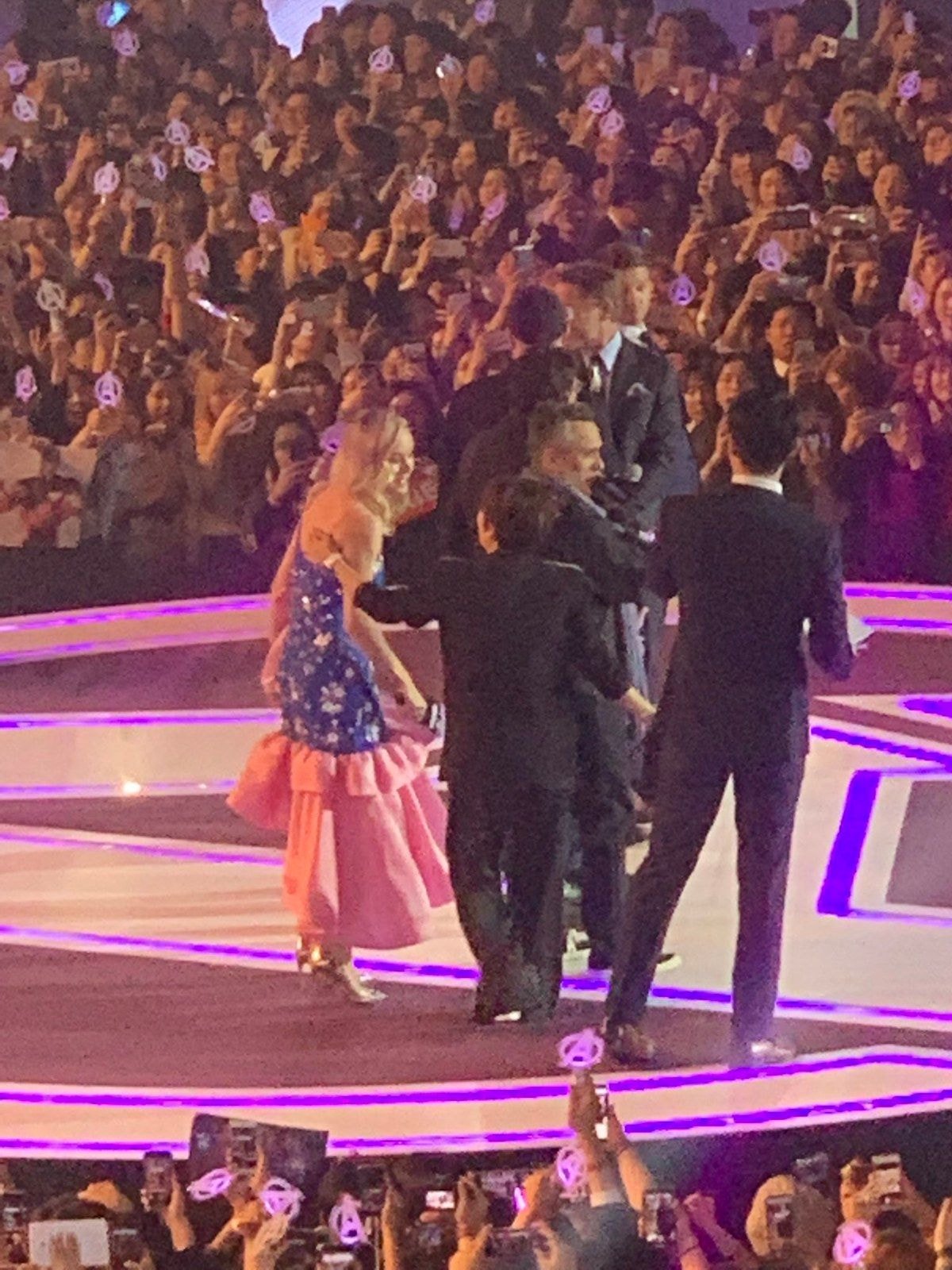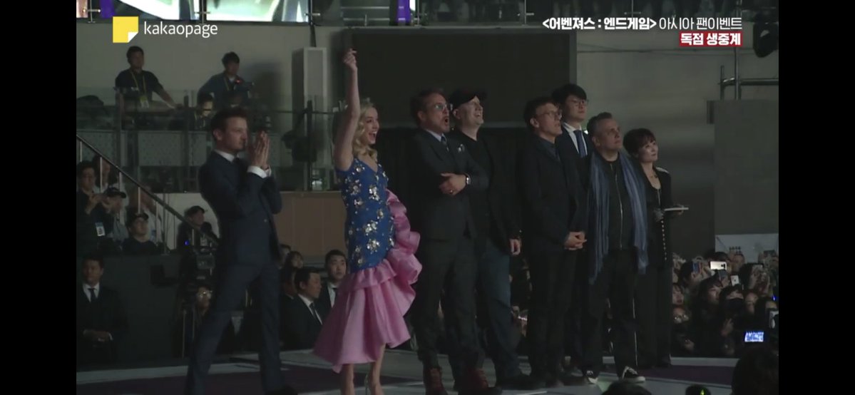 팬영상이 끝난 뒤에는, 팬들이 모두 함께 응원봉을 들며 "Thank You, Avengers!"(고마워요, 어벤져스!)라고 외쳤습니다. 배우들은 전혀 예상하지 못한 듯 박수를 치며 환호했습니다.