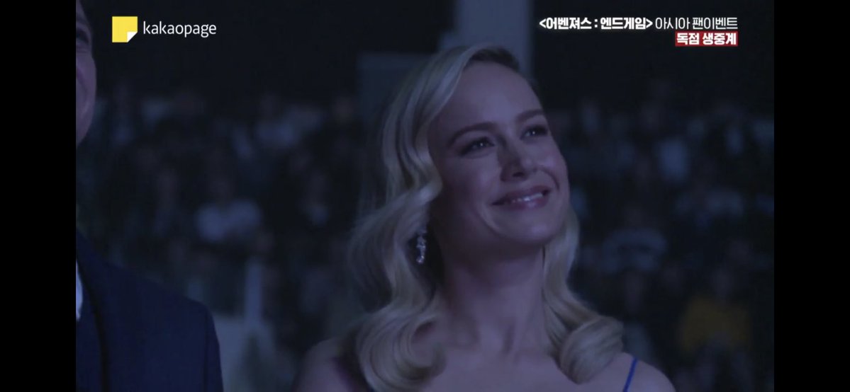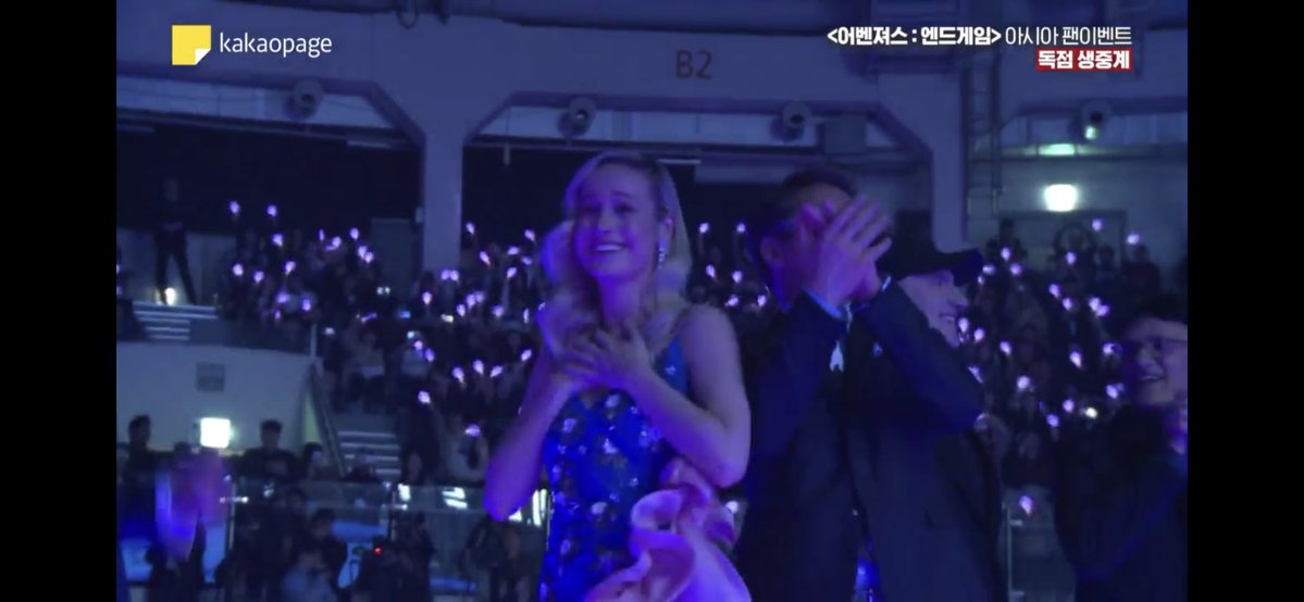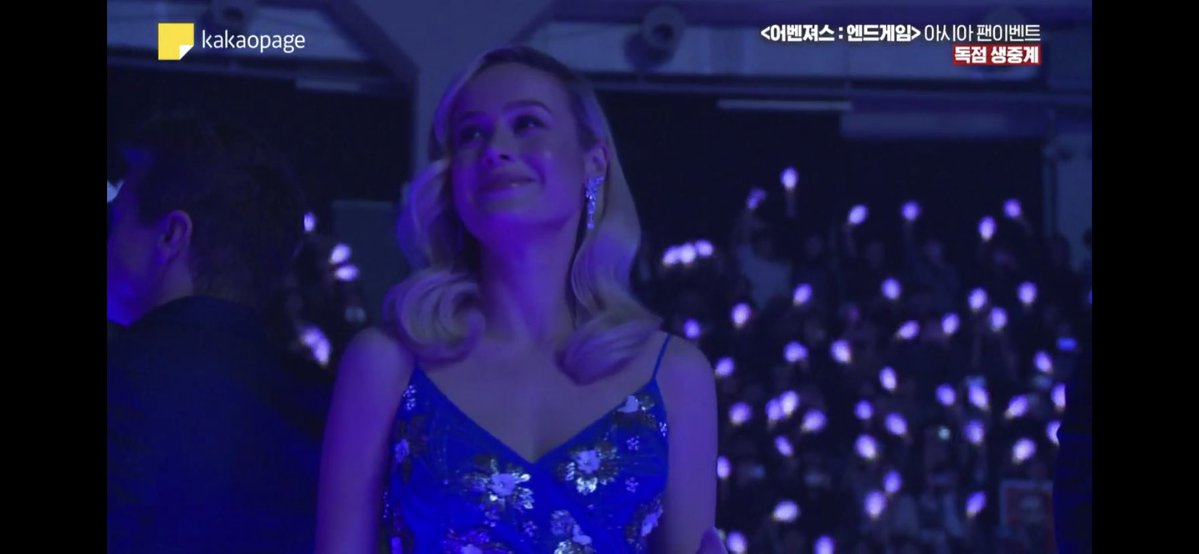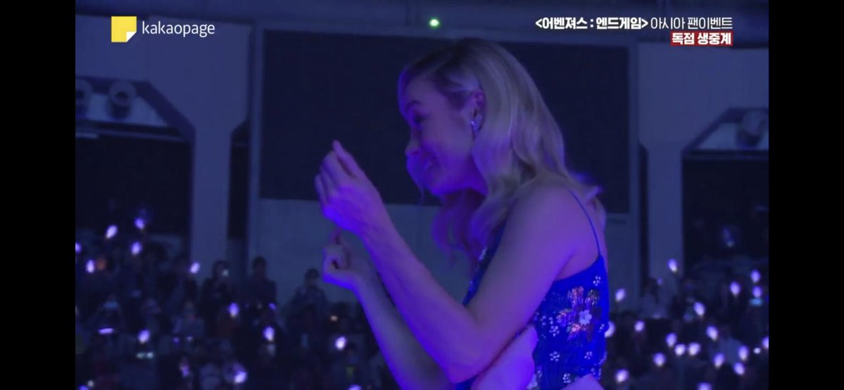 그 중에서 가장 놀란 사람은 바로 브리 라슨이었습니다. 한국팬들의 뜨거운 사랑에 어쩔 줄 모르겠다는 듯 감격받은 표정을 지으며 두 손을 가슴에 얹었습니다.