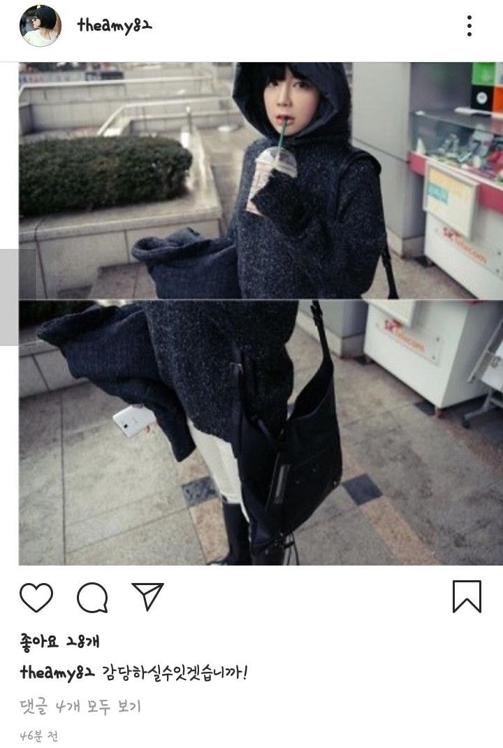 에이미는 17일 자신의 공식 인스타그램을 통해 "감당하실 수 있겠습니까!"라는 글과 함께 일상 사진을 공개했습니다. 해당 멘트는 JTBC 드라마 'SKY캐슬'의 명대사를 인용한 것으로 보이는데요.
