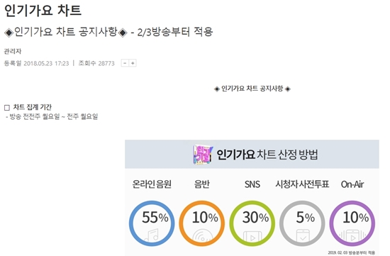 SBS : 방송사 마다 차트 집계 방법이 다르다. 세부 기준을 말씀드리기 어렵다.