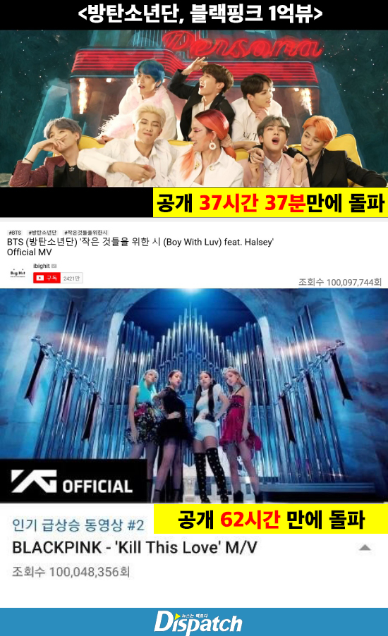 '킬 디스 러브' 1억 뷰 달성 시간 : 62시간.