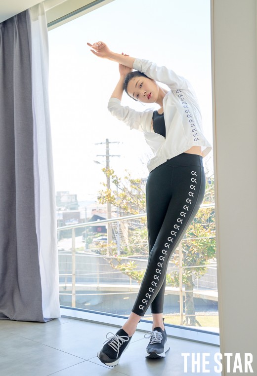 화보 촬영 후 이어진 인터뷰에서 설리는 “요즘 유행인 애슬레저 룩을 즐기는 나만의 팁은 모던한 레깅스에 티셔츠를 입고 포인트를 주는 것이다. 심플한 룩에 양말 등 재밌는 요소를 더한다면 데일리룩으로도 쉽게 접근할 수 있다”라며 “다이어트는 이제 습관이 됐다. 원래 탄수화물을 먹지 않는 다이어트를 했는데 요즘은 간식이나 군것질 대신 식사할 수 있는 음식을 먹는다”라며 몸매 관리 비법에 대해서도 전했다.