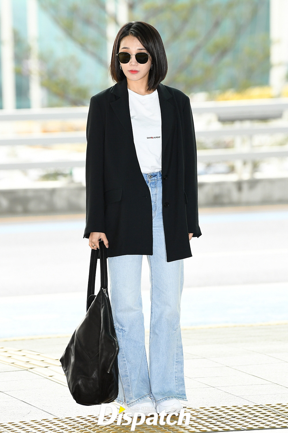 정은지는 이날 흰 티에 청바지, 블랙자켓과 선글라스를 매치해 시크한 패션을 완성했다.