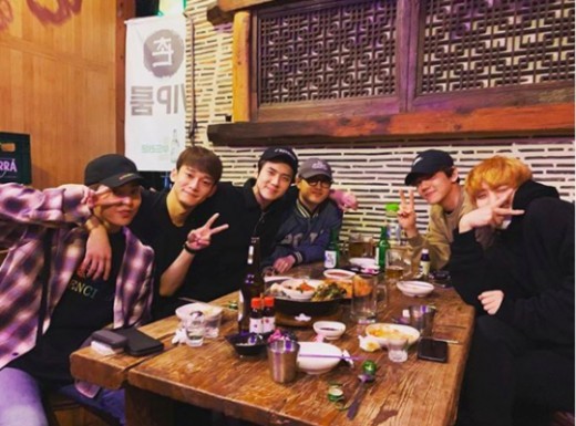 세훈이 공개한 사진에는 엑소 멤버들의 편안한 술자리 모습이 담겼다. 세훈을 비롯해 시우민 첸 디오 백현 찬열이 편안한 복장으로 자유롭게 앉아 카메라를 바라보고 있다. 이들의 훈훈한 분위기가 눈길을 끈다.