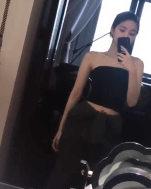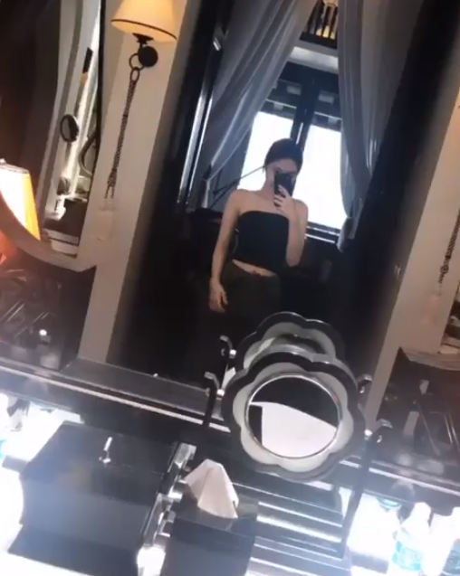 특히 눈길을 끈 것은 그의 패션이었는데요. 블랙으로 발끝까지 통일했습니다. 크롭탑을 입었는데요. 머리카락을 묶어 여리여리한 어깨 라인을 그대로 드러냈습니다.