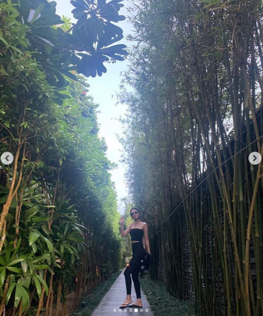 군살 하나 없는 팔뚝도 돋보였고요. 잘록한 허리라인으로 S라인 몸매를 과시했습니다. 복부를 살짝 드러내고 섹시함까지 더했죠.