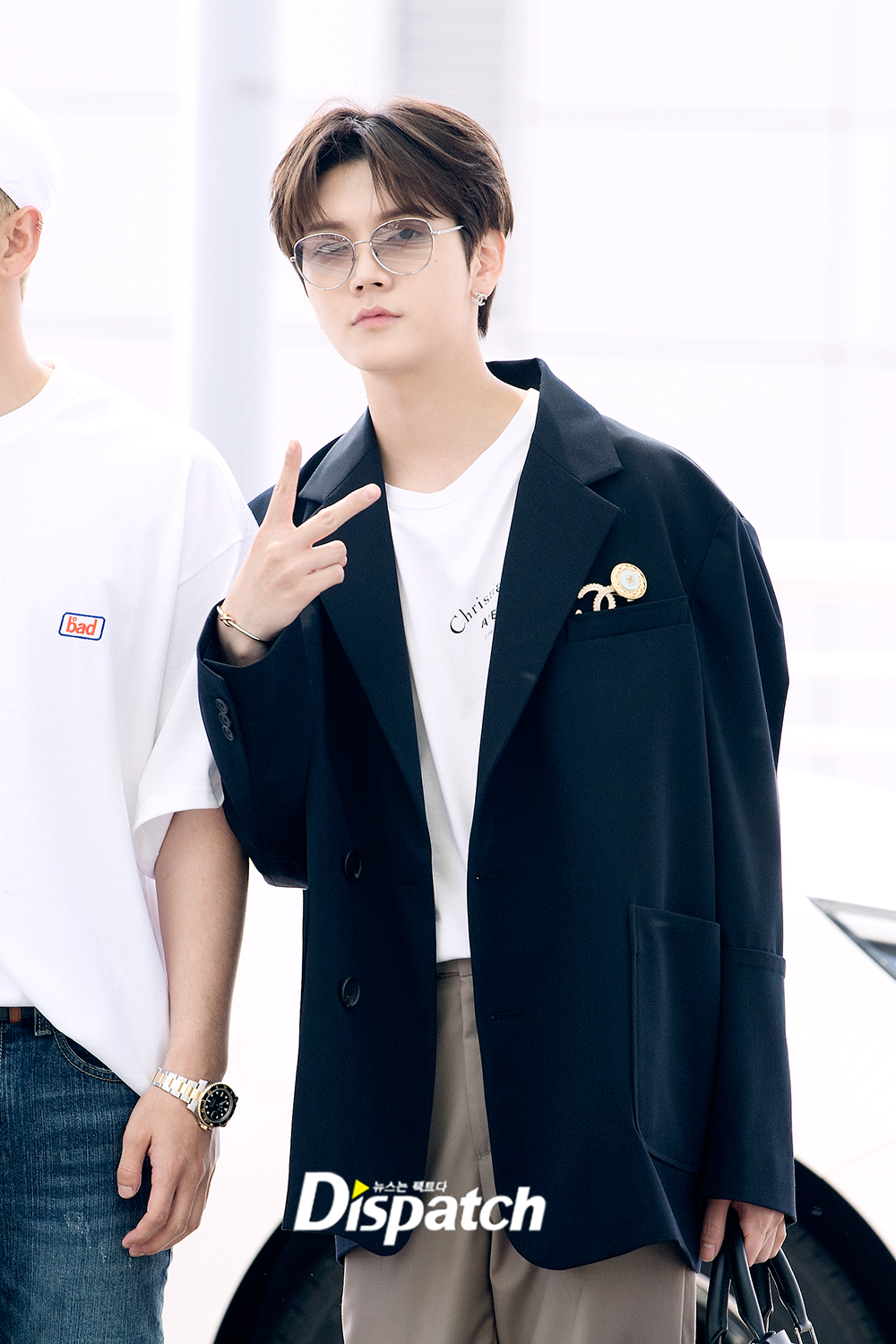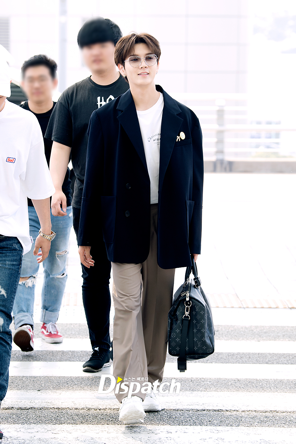 '뉴이스트' 렌은 이날 베이지 슬랙스에 네이비 재킷을 매치해 시크한 공항패션을 연출했다. 완벽한 비주얼이 돋보였다.