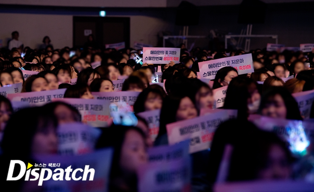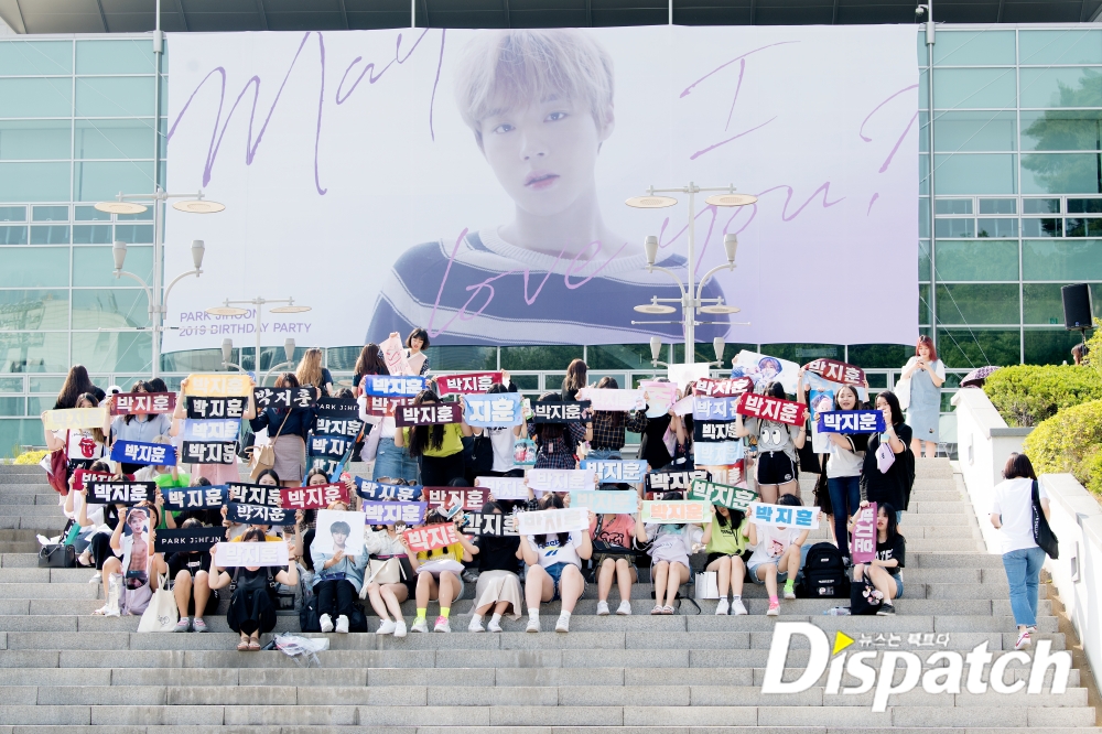 시작 전부터 분위기가 후끈~합니다. 박지훈의 생일을 축하해주기 위해 한자리에 모인 메이들. 플래카드, 인형 등을 들고 이 순간을 사진으로 남겼습니다.