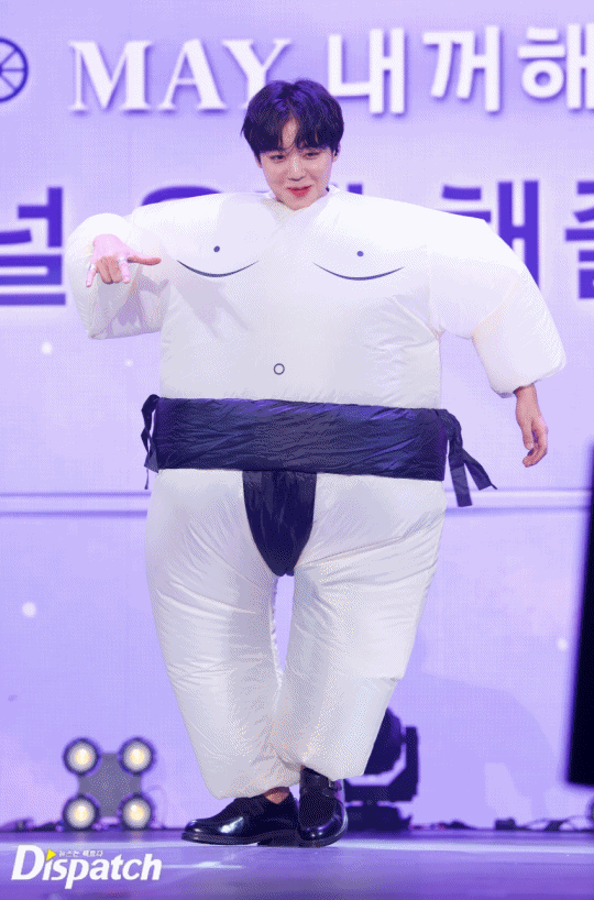 본격 팬서비스는 지금부터입니다. 박지훈은 팬들을 위해 웃음을 자처했는데요. 수많은 메이들의 입덕 통로가 됐던 ‘스모지훈’, 기억하시나요? 다시 한번 스모지훈으로 변신해 화려한 춤사위를 선보였습니다.