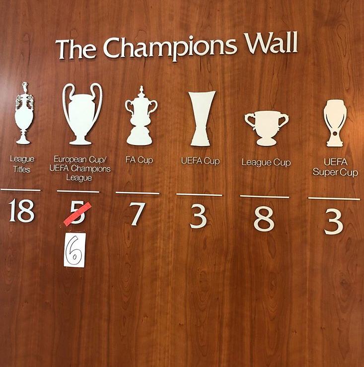 우승을 만끽한 리버풀은 멜우드 훈련장 챔피언스 벽에 새겨진 UCL 우승 횟수를 급하게 수정하고자 했습니다.
