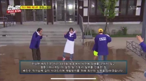 한편 런닝맨은 최근 웹툰 '머니게임' 설정 및 스토리 일부를 표절했다는 논란에 휩싸이기도 했는데요. 한 달여 만에 자막으로 사과해 일단락 됐습니다.