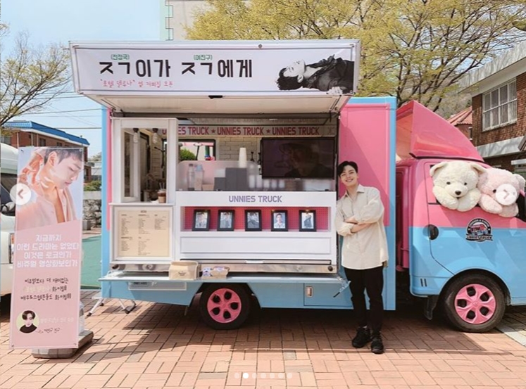 연기자 여진구가 '방탄소년단' 정국에게 간식차를 보냈습니다. 한 사이트에는 정국이 친구 여진구가 보내준 간식차 앞에서 찍은 사진이 올라왔는데요.