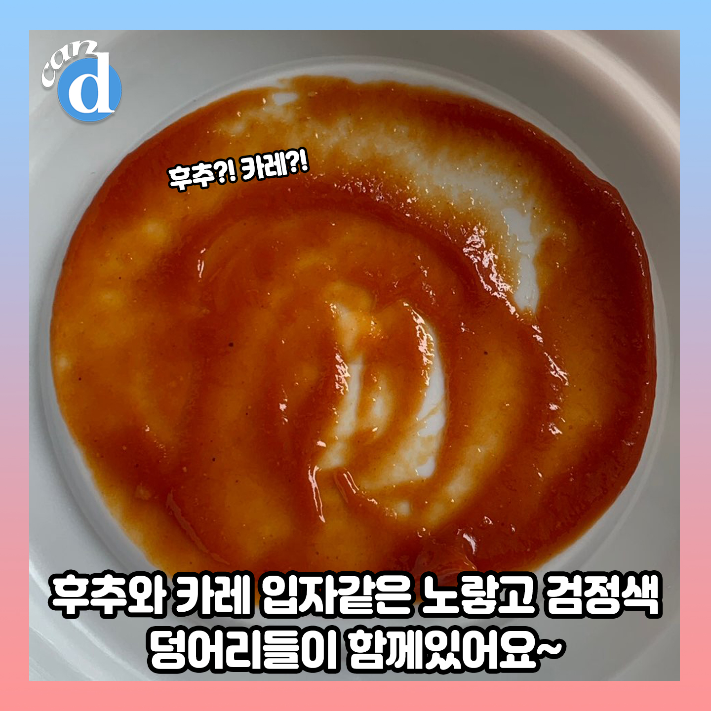 케첩을 얇게 펴보면 검은색과 노란색의 덩어리들도 볼 수 있었습니다.