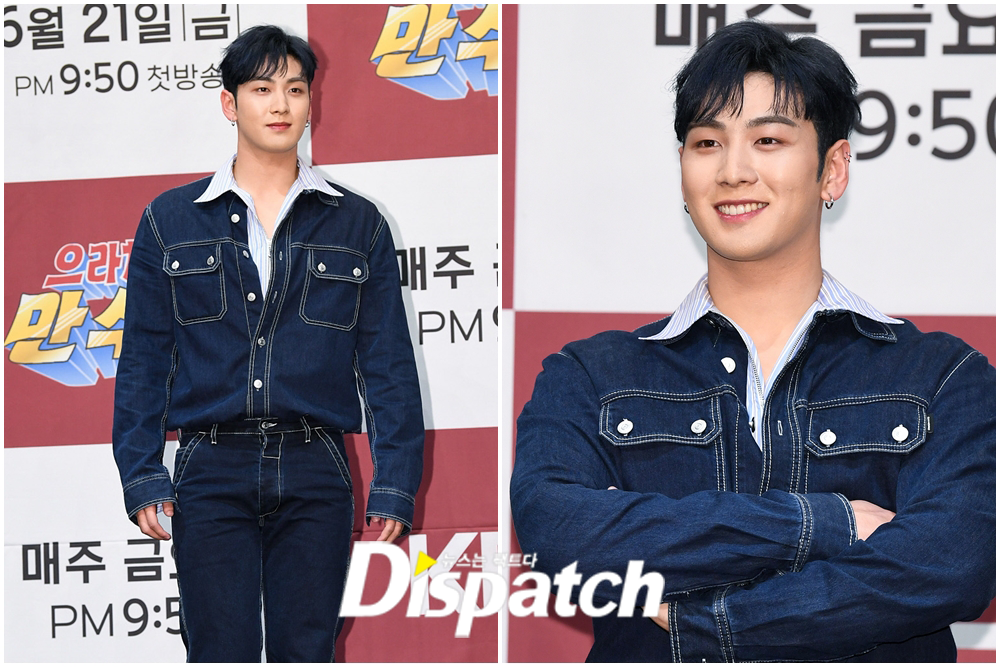 백호는 이날 블루톤 헤어에 청청패션을 선보이며 남다른 패션감각을 선보였다.