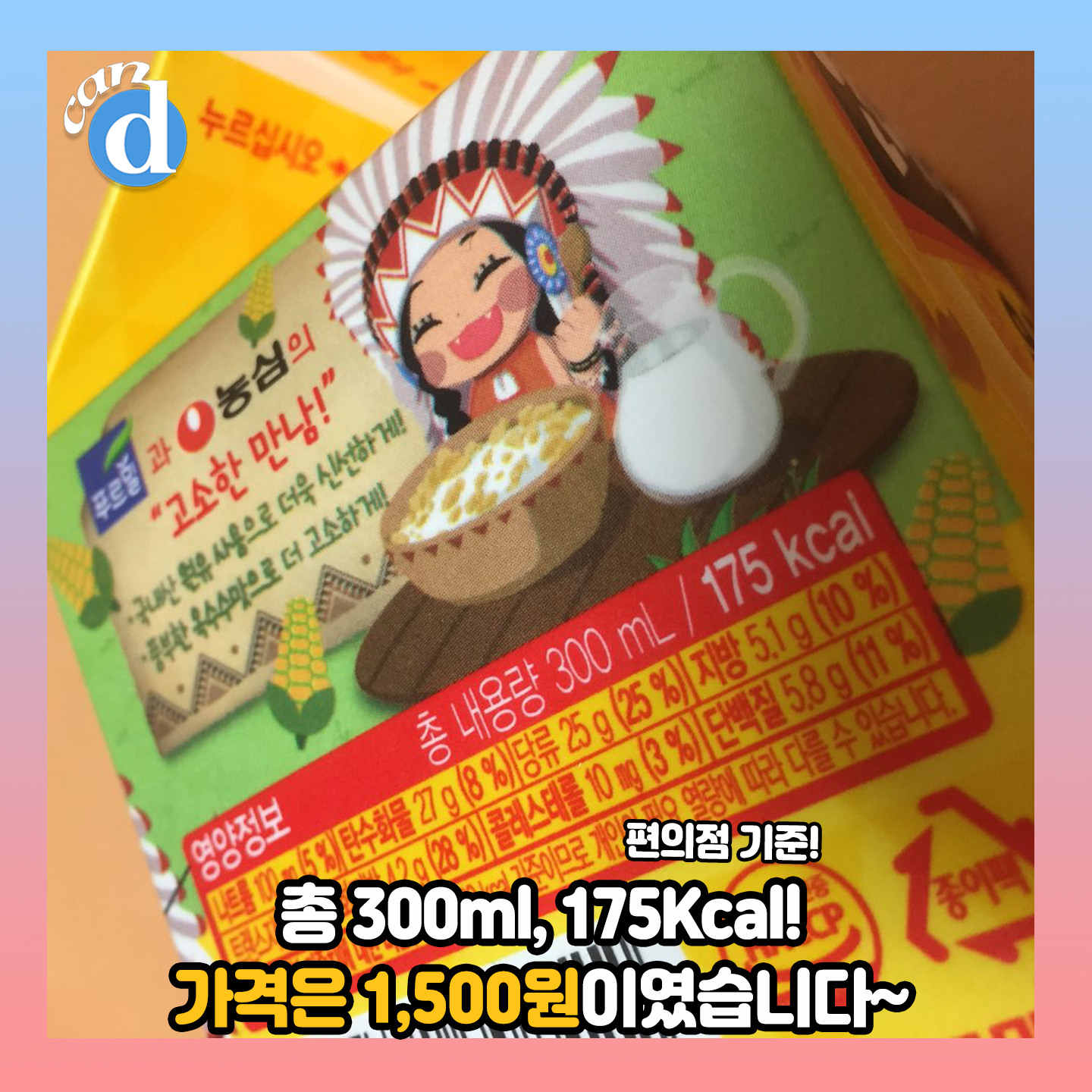 가격은 편의점 기준 1,500원. 300ml에 175Kcal입니다.