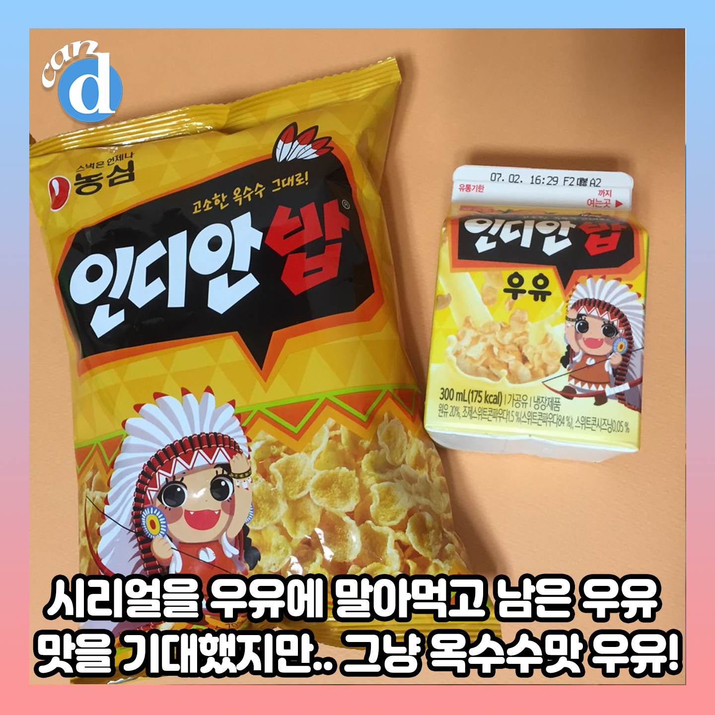 농심에서 출시한 인디안 밥 과자가 우유로 새롭게 출시했습니다.