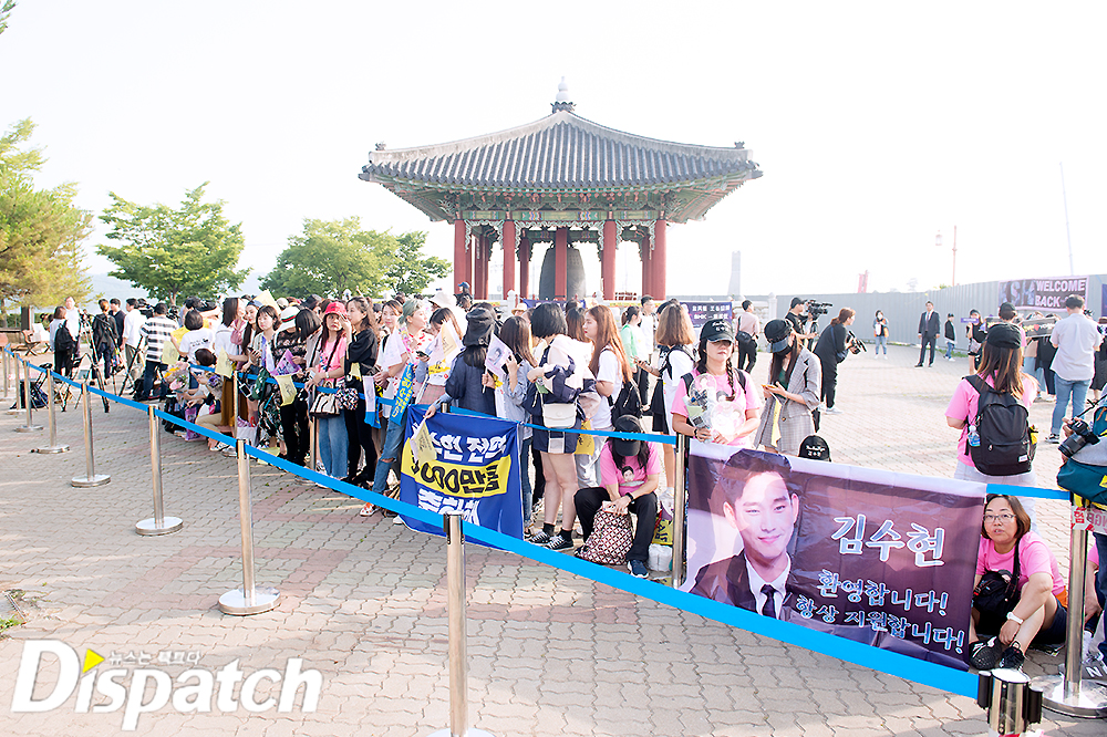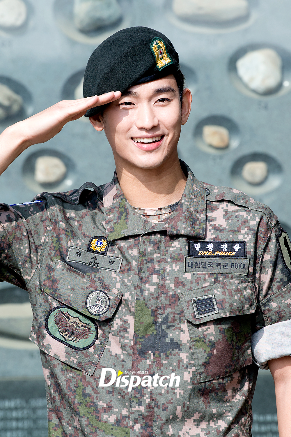 김수현은 이날 전역식을 마치고 군복 차림으로 등장했다. 현장에 모인 수많은 팬들과 취재진을 향해 미소로 화답하는 등 남다른 팬서비스도 선보였다.