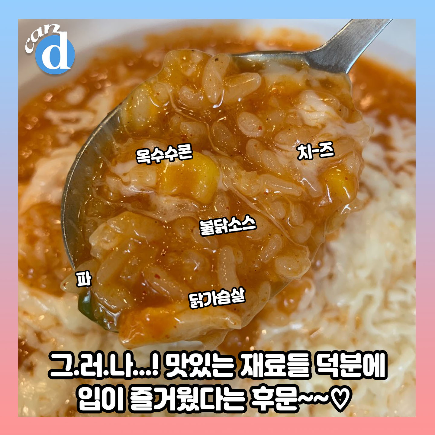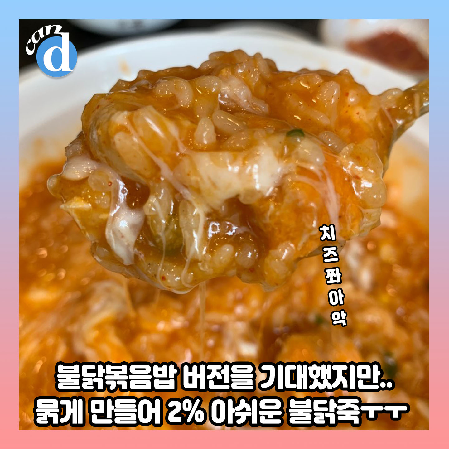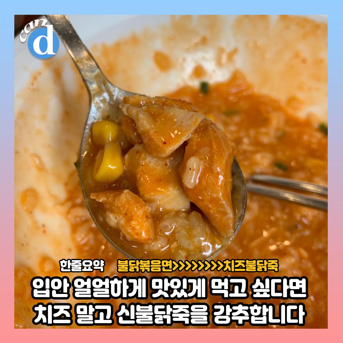 오늘의 캔디픽이 바로 '치즈불닭죽'입니다.