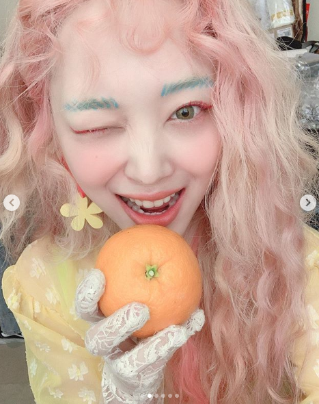 핑크 헤어 컬러와 볼터치로 인간 복숭아의 매력도 뽐냈죠. 마치 동화 속에서 튀어나온 듯 신비로움을 더했는데요.