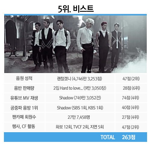 ◆ 5위> 비스트 : "장르 확장, 스펙트럼 ↑"