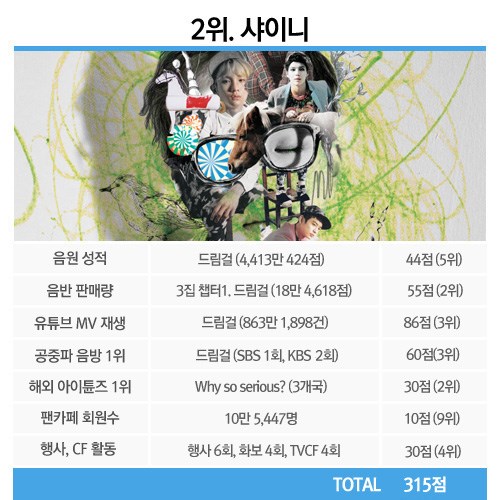 ◆ 2위> 샤이니 : "음반 강세, 대중성 확보"