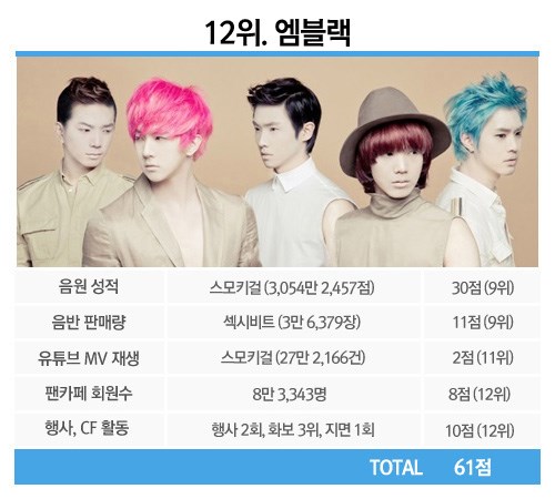 ◆ 12위> 엠블랙 : "음원 중박, 이준 빈자리 ↑"