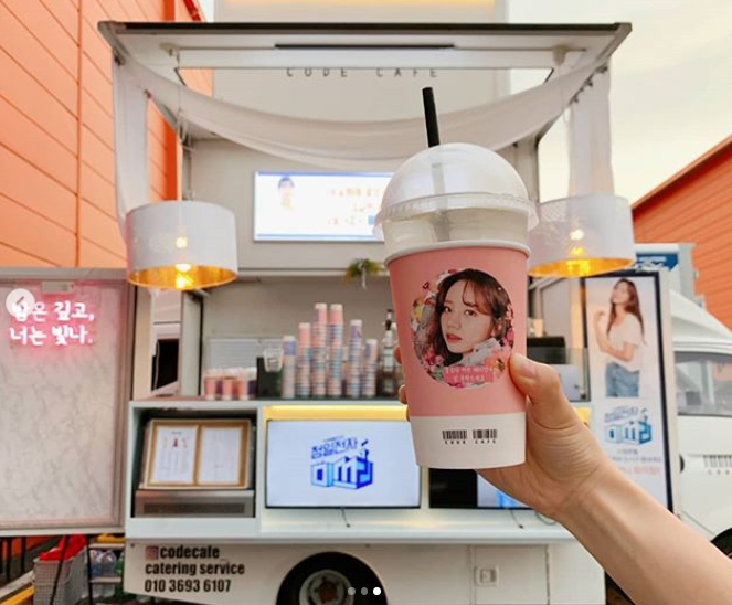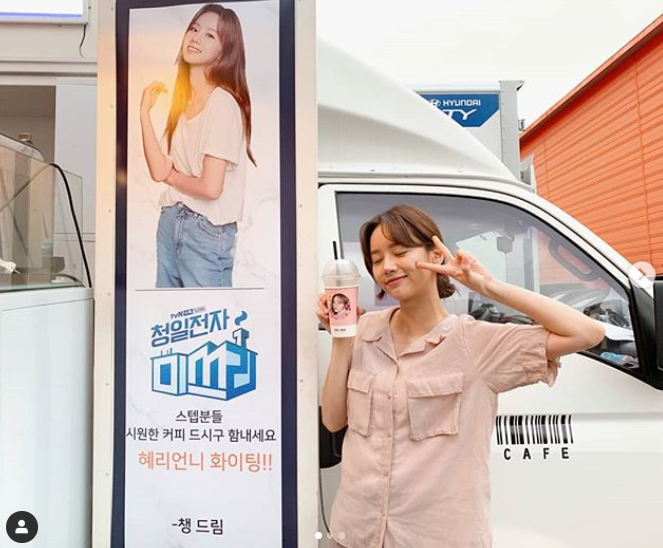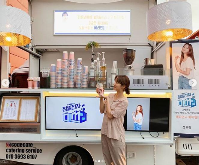 혜리는 로제가 보낸 커피차도 인증했는데요. 로제는 "스태프 분들 시원한 커피 드시고 힘내세요", "혜리 언니 화이팅"이라고 응원했습니다.
