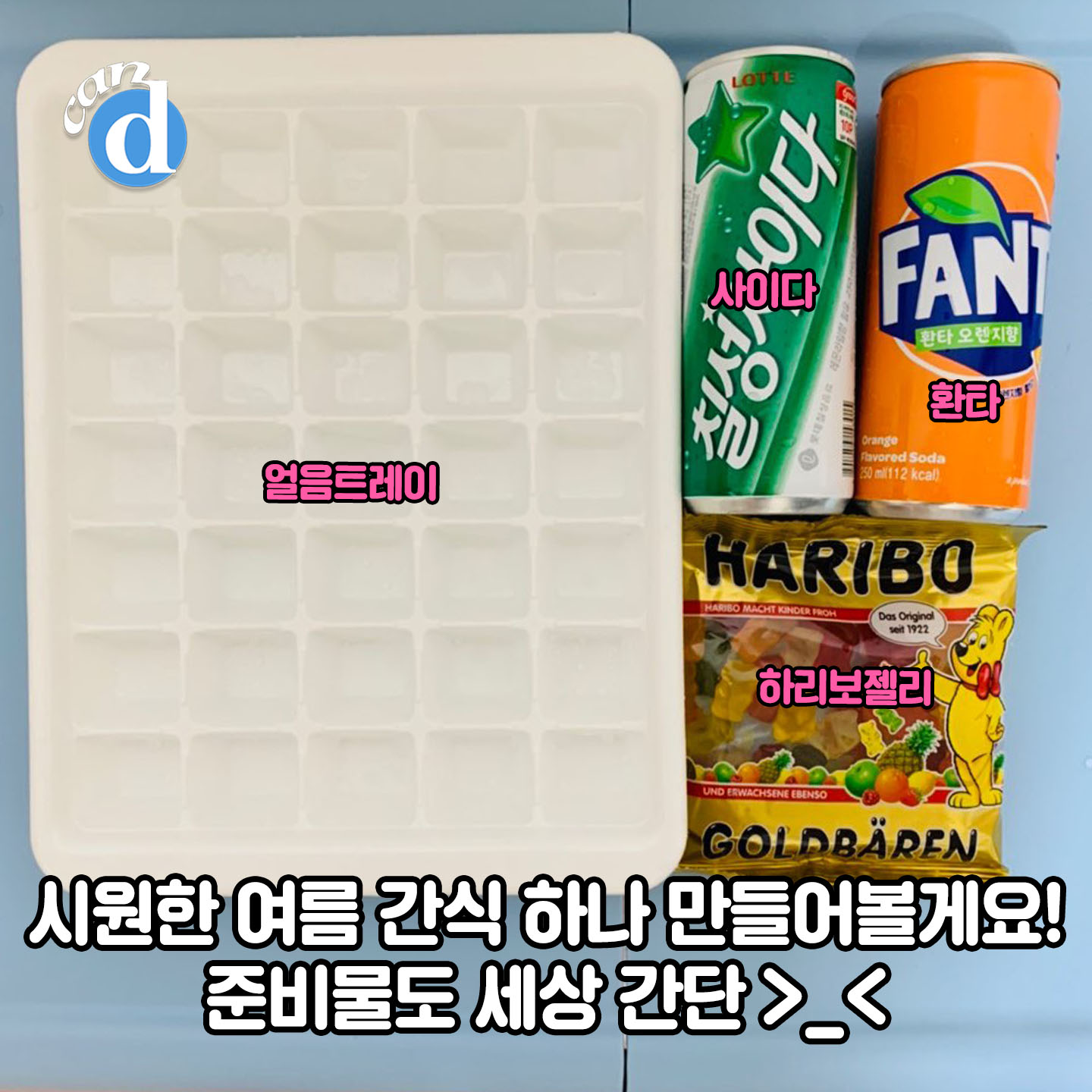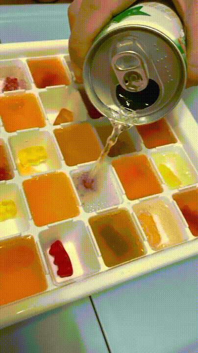 준비물도 간단했습니다. 얼음트레이와 젤리(취향대로), 탄산음료만 있으면 되는데요.