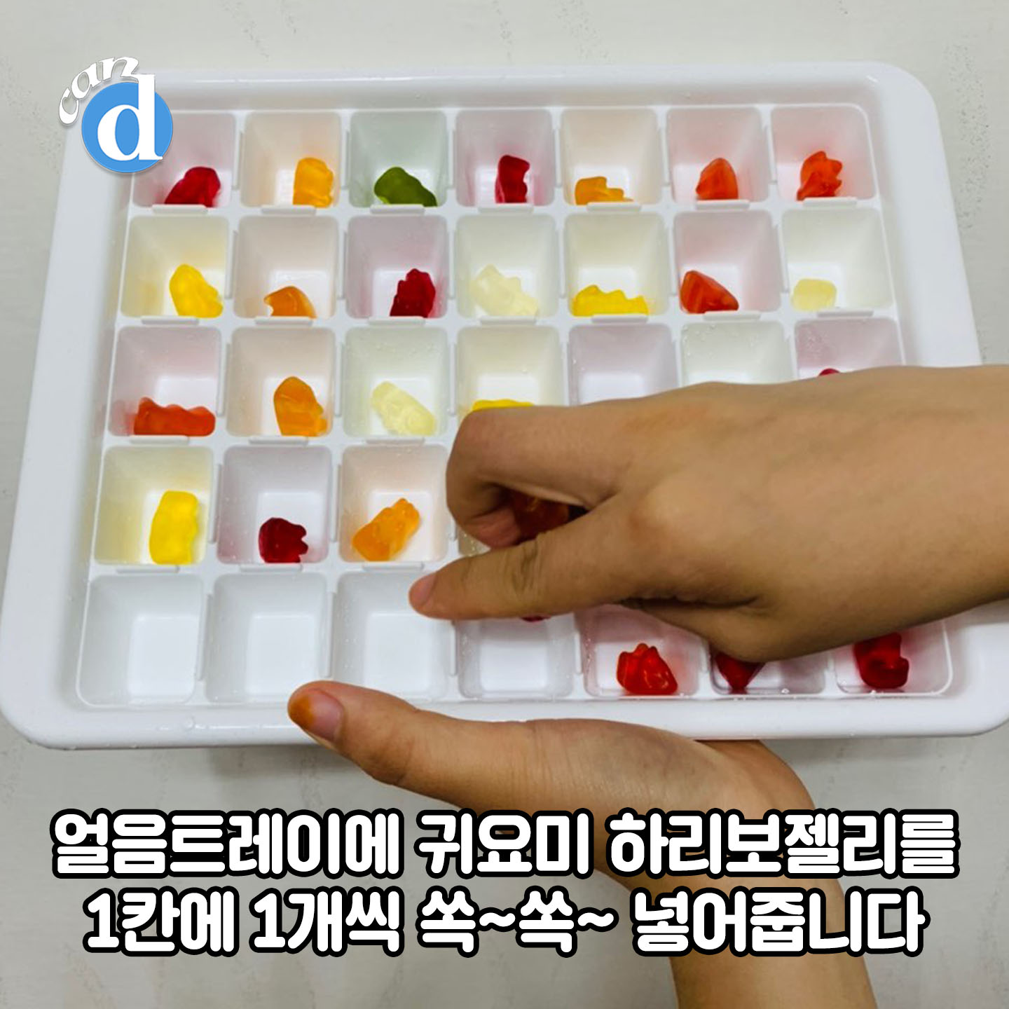 얼음트레이에 귀요미 하리보젤리를 쏙쏙 넣어줬는데요.