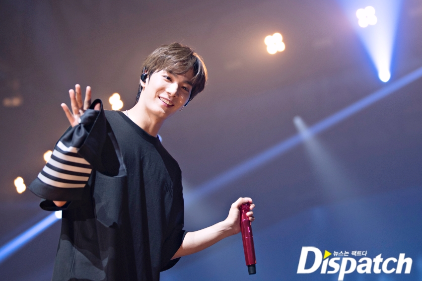 제육이를 향한 본격적인 애정 표현은 지금부터입니다. 뉴이스트가 드디어 완전체로 무대에 올랐는데요. 어느 때보다 신나 보였습니다. 멤버들이 등장하자 수 천 명의 관객 석이 들썩였습니다. 현장은 이내 환호성으로 가득 찼죠.