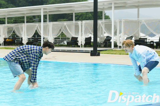 모든 멤버들이 세팅을 마쳤습니다. 그러나 시작부터 숨 막히는 더위가 습격했습니다. 이날 가평에는 폭염주의보까지 내린 상태였는데요. 내리쬐는 태양에 풀장에서 습한 공기까지 올라왔습니다. 습도가 무려 74%. 촬영 진행 괜찮을까요?