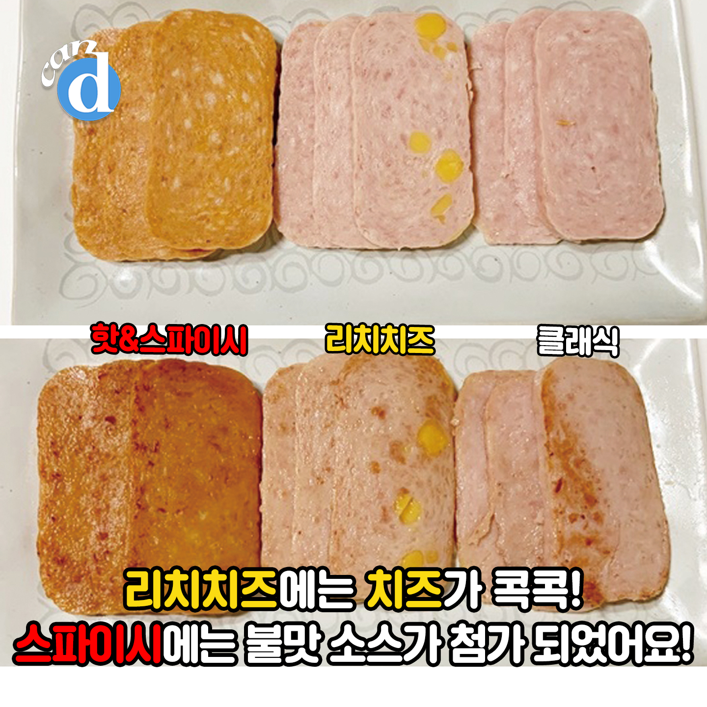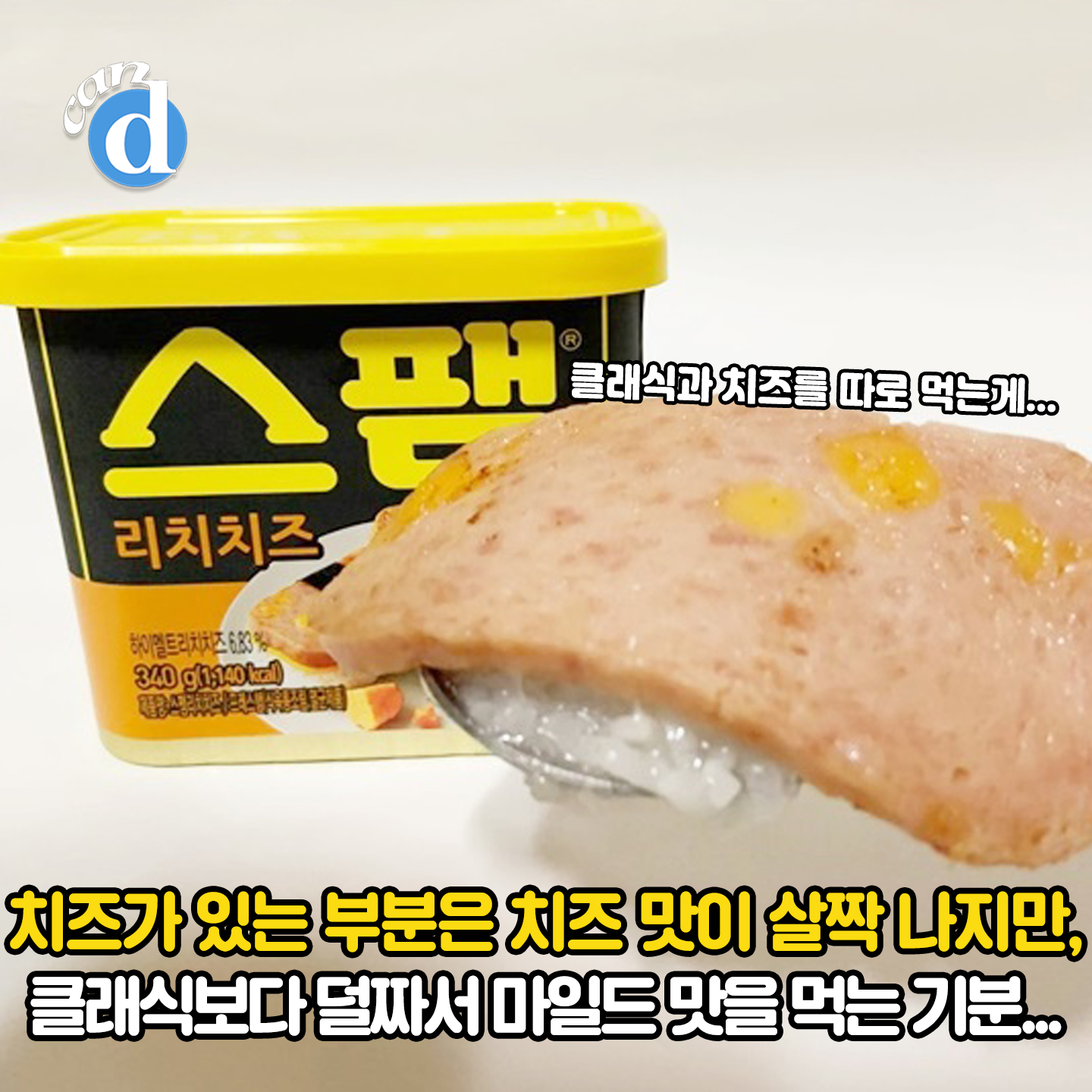리치치즈는 치즈가 들어있는 부분에는 치즈 맛이 살짝 나지만, 다른 부분은 스팸 마일드 맛을 먹는 맛이었습니다.