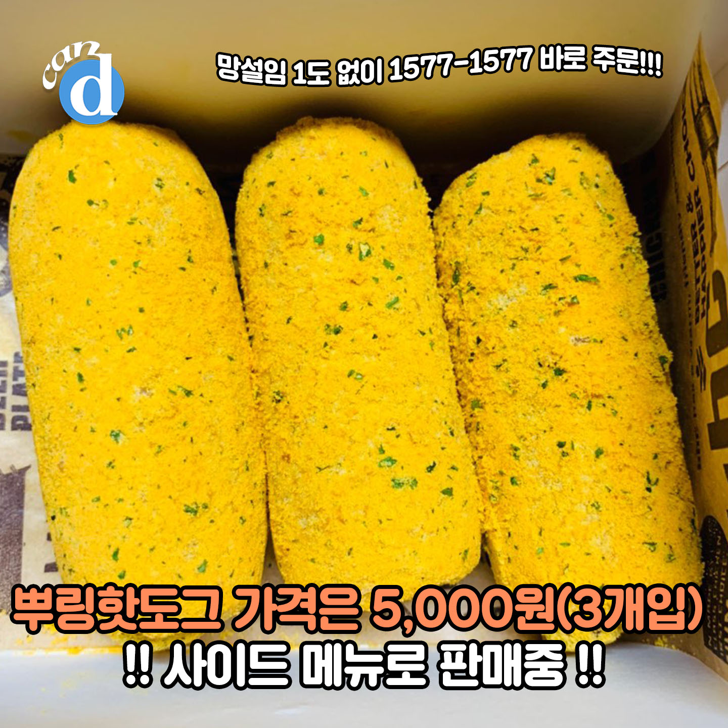 최근 BHC에서 뿌링클치킨, 뿌링치즈볼에 이어 갓띵작, 뿌링핫도그를 선보였다고 합니다.