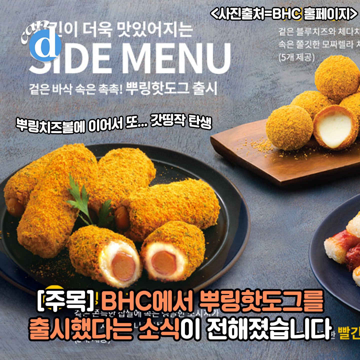 BHC에서 치킨과 함께 즐길 수 있는 사이드 메뉴 '뿌링핫도그'를 출시했습니다.