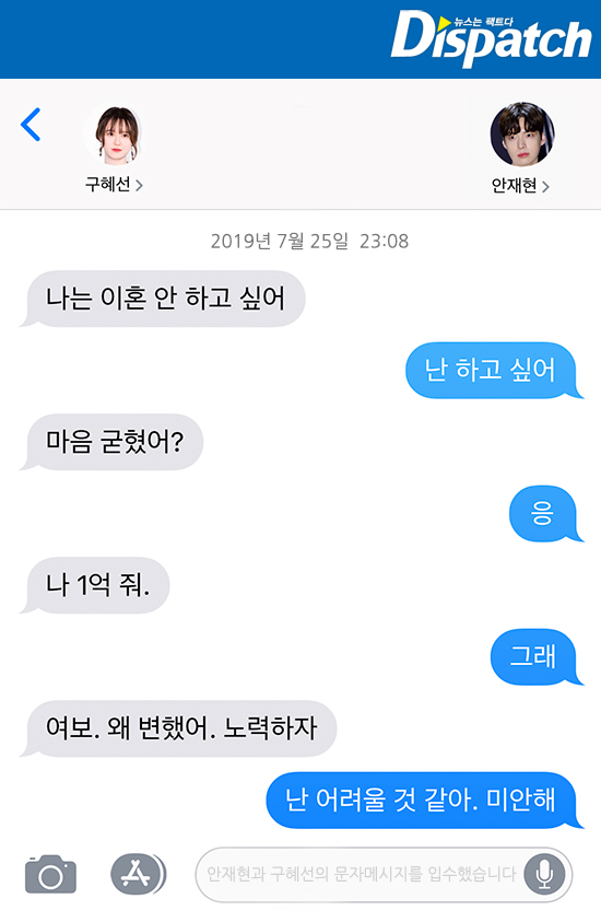'디스패치'가 구혜선과 안재현의 문자 대화 2년 치를 입수했다. 둘의 결혼 생활은 여느 부부와 다르지 않았다. 사랑했고, 다투었고, 오해했고, 화해했고, 그러다 서서히 멀어졌다.