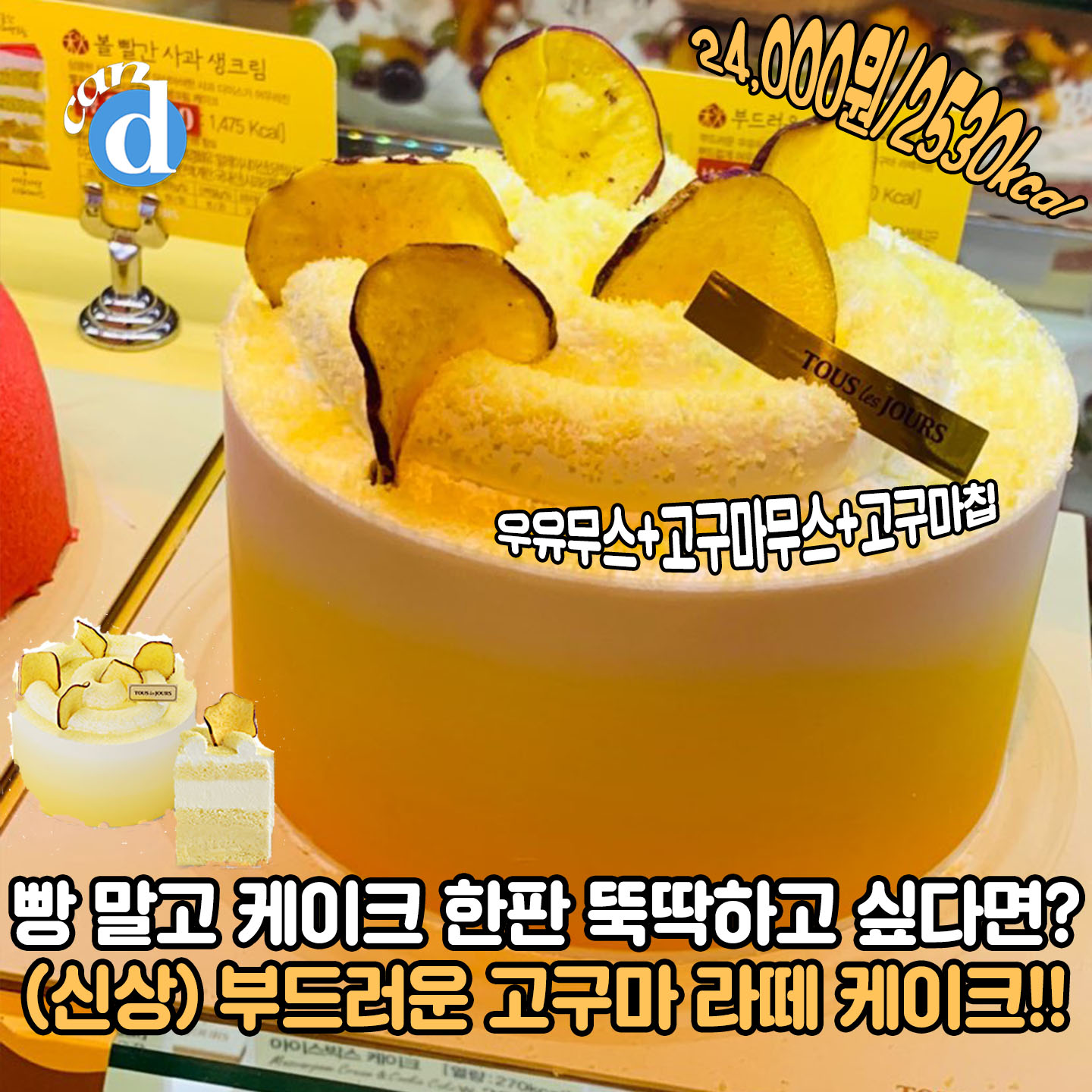 빵 말고 케이크 한판 뚝딱하고 싶으면 고구마 라떼 케이크를 추천합니다.