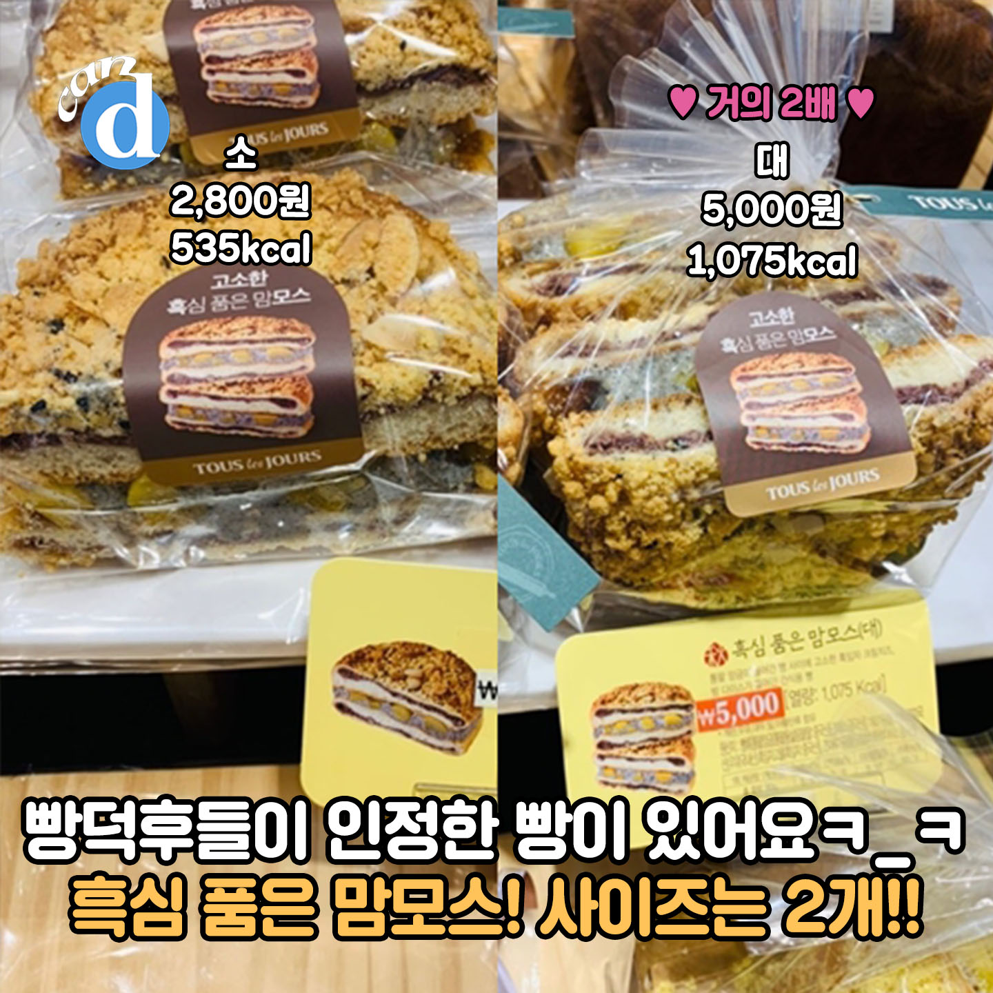 뚜쥬 또 하나의 가을 신상 빵이 화제인데요. 정체는 바로바로 흑심 품은 맘모스!! 사이즈는 소,대 2종입니다.